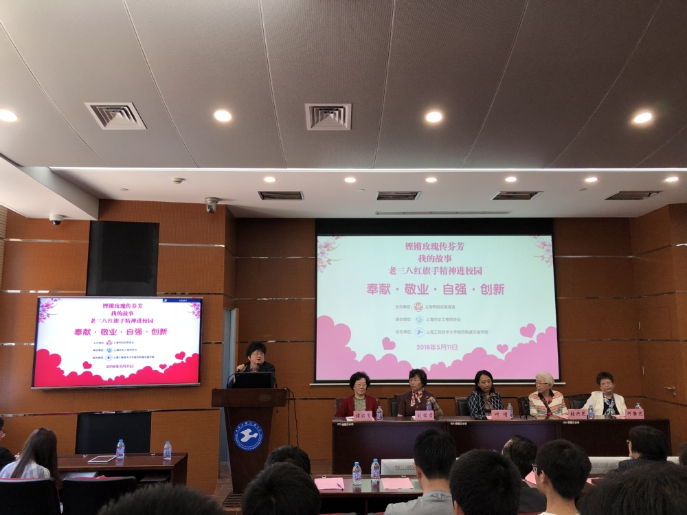 上海工程技术大学城市轨道交通学院党总支书记柴晓冬致辞,欢迎各位嘉宾的到来,与大家一样期待着共同聆听和感悟几位知识女性传奇的人生故事,品阅她们数十年如一日坚守的那份工匠精神和创新意识。