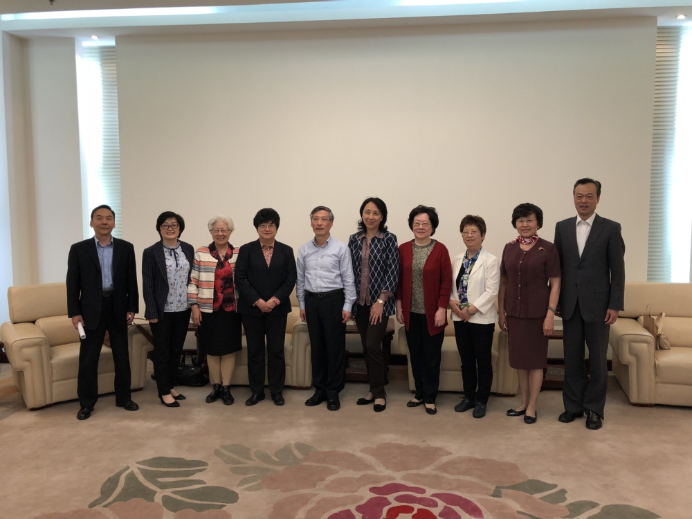 在报告会正式开始之前,上海工程技术大学校党委副书记、纪委书记鲁嘉华与来校的上海市女工程师协会各位来宾于图文信息中心贵宾厅交流畅谈,对大家的到来表示热烈地欢迎,也预祝下午的报告会圆满成功。