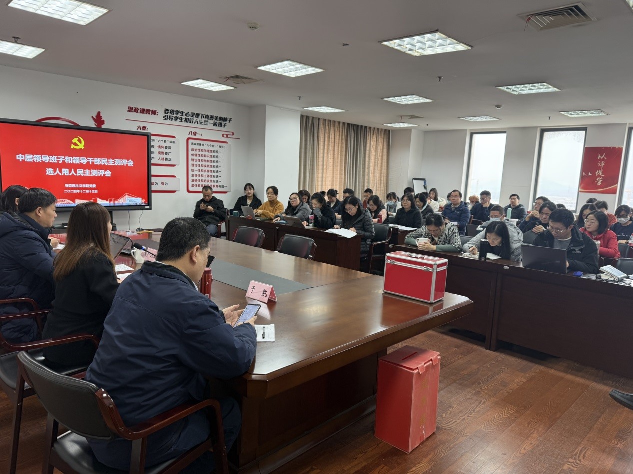 为进一步加强学院干部队伍建设、提升学院管理水平,根据校党委组织部要求,12月13日,马克思主义学院党委在行政楼1112会议室召开2024年度领导班子及领导干部民主测评暨科(职)级干部“一报告两评议”测评会。学院全体教师参加会议,会议由学院党委书记董旖旎主持。