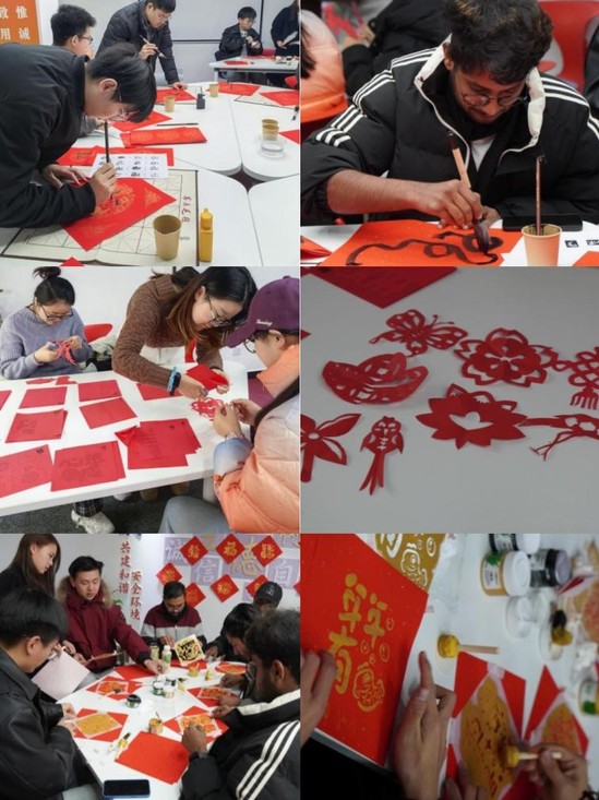 剪纸工作坊则展示了传统剪纸技艺的精妙,参与者从简单的窗花到复杂的吉祥纹样,每个人都在创作中找到了自己的乐趣,不少同学还合作完成了寓意吉祥的剪纸作品,留作新春纪念。