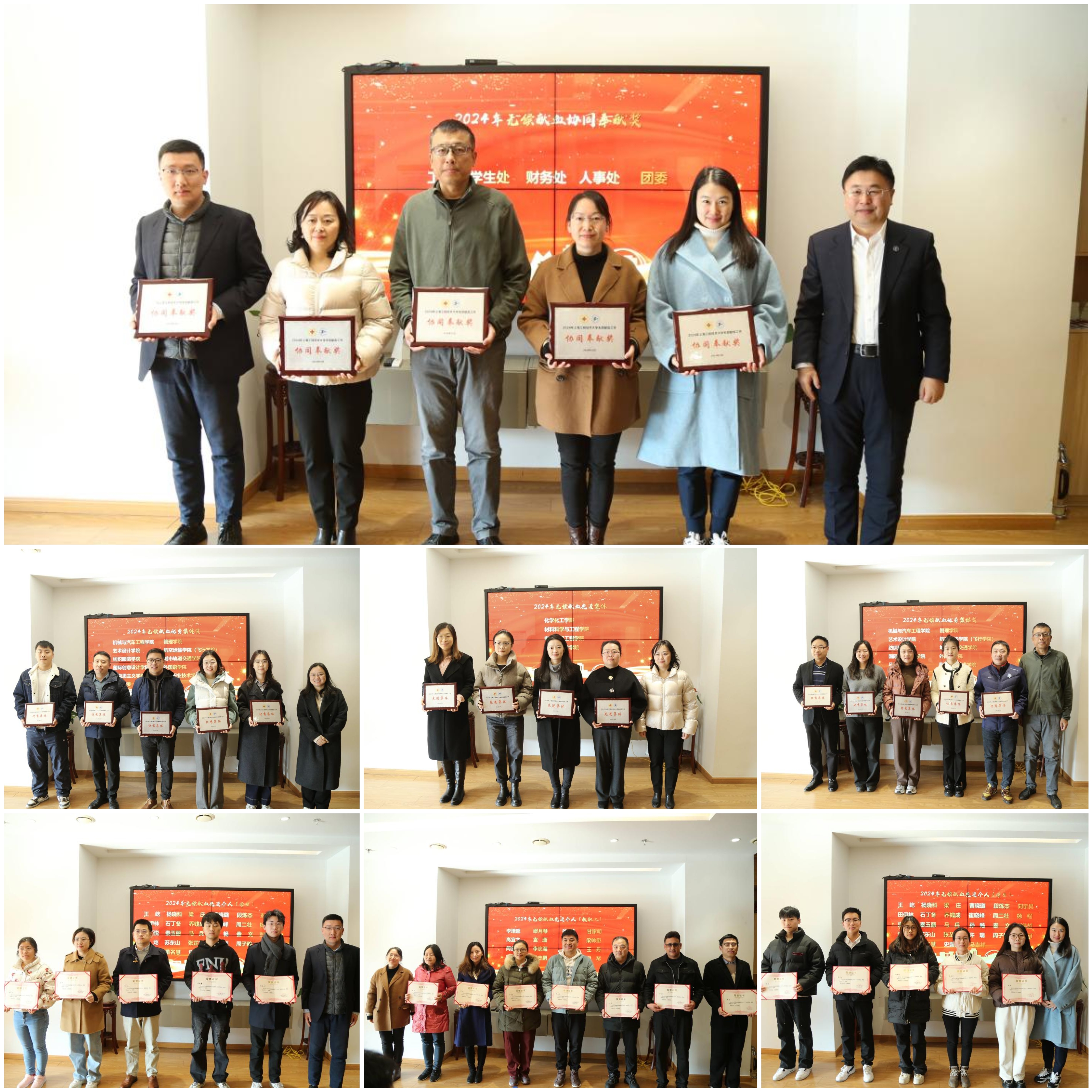 会上,石海雄总结汇报了2024年无偿献血工作。化学化工学院党委副书记秦颖作为“先进集体”代表发言,管理学院学生周二壮作为“先进个人”代表发言。与会领导为献血工作先进个人、优秀集体、先进集体和协同奉献奖颁奖。