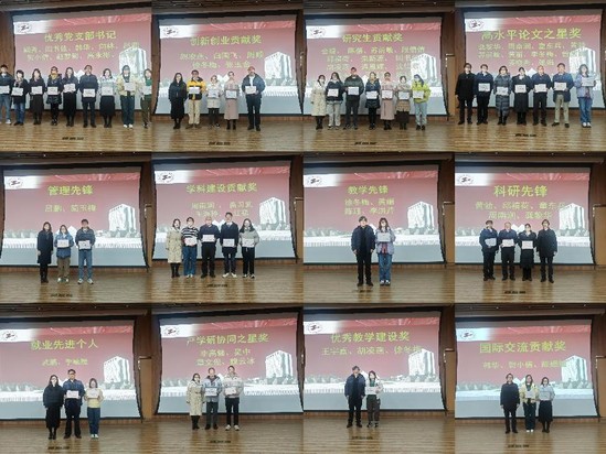 学院领导班子分别为优秀党支部书记、师德师风优秀人员、年度考核个人优秀人员、管理先锋、就业先进个人、上海高校辅导员团队拓展活动一等奖、优秀辅导员、创新创业贡献奖、学科建设贡献奖、产学研协同之星奖、研究生贡献奖、优秀班主任、教学先锋、优秀教学建设奖、高水平论文之星奖、科研先锋奖、国际交流贡献奖等获奖教职工颁奖。