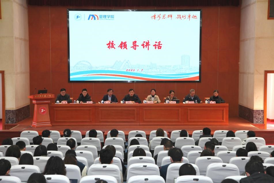 管理学院院长胡斌从党建工作、教学、科研、学生工作等方面总结了2024年学院工作。同时,围绕“十四五”规划总结与“十五五”规划编制、AACSB 认证、DBA 等项目建设以及博士点申报等重点工作,对2025年学院工作做出了总体部署。