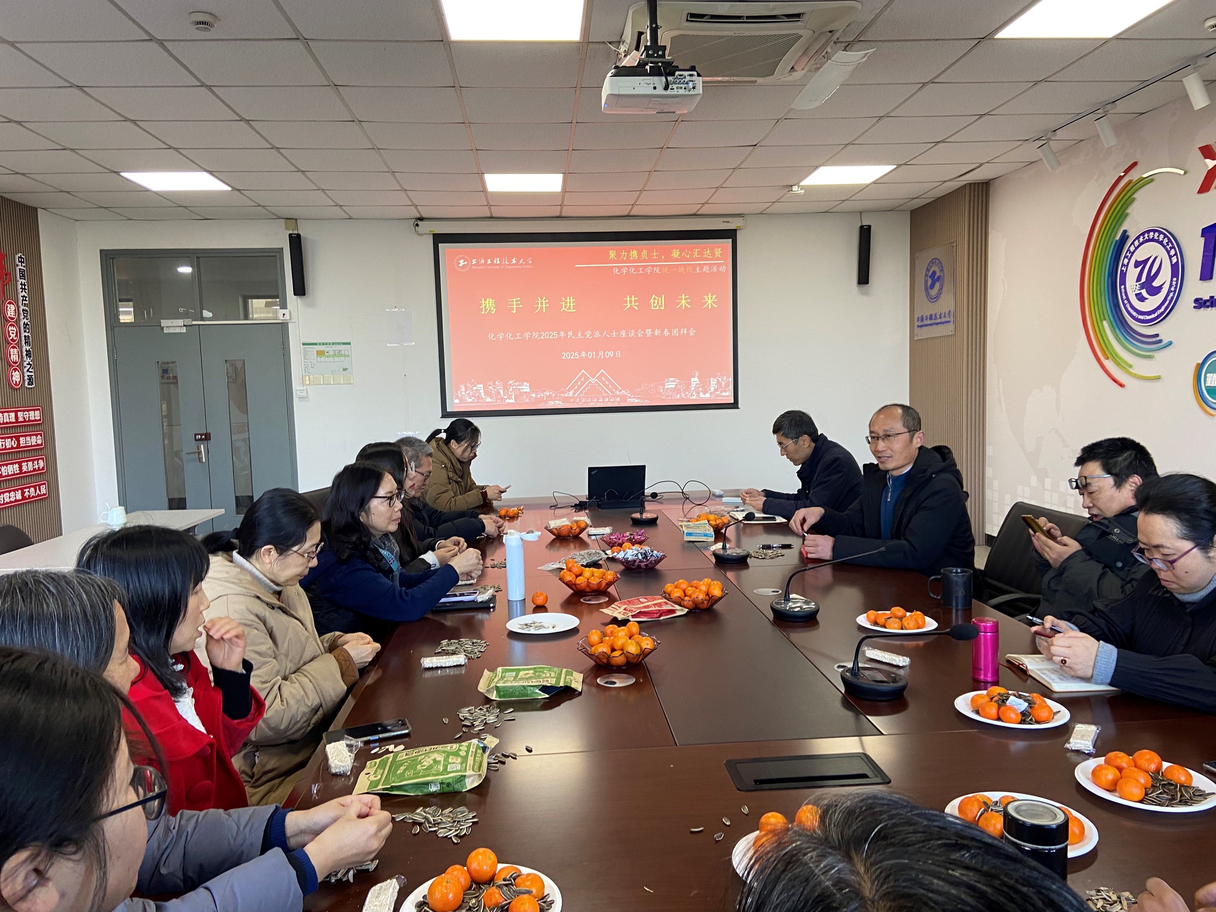 为充分发挥党外人士建言献策作用,助力学院高质量发展,1月9日,化学化工学院在实训中心召开党外代表人士座谈会。学院党委书记宋勤健、党委副书记秦颖、副院长李亚、副院长陆杰、工会主席张敏以及来自各民主党派、知联会的代表人士参加座谈会。
