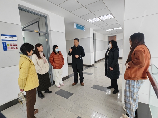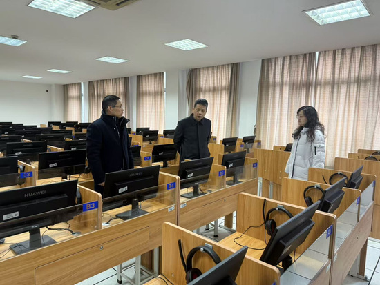 1月7日,张朝民和外国语学院副院长刘金龙赴外国语学院语言实验室进行检查,查看新改造完成的语言实验室,并对实验室建设工作、清洁工作和安全管理进行现场指导,和实验室工作人员一起切断电源,检查重点区域,确保安全后,为实验室贴上封条。