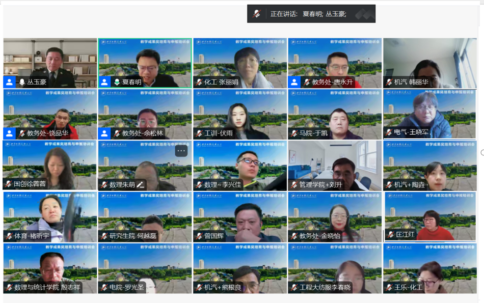 为进一步凝练特色、总结成果,推进学校新一轮教育教学成果奖培育与申报工作,1月13日下午,学校在线举行了教育教学成果奖培育与申报工作专题培训会。培训会由上海海关学院丛玉豪校长主讲,我校副校长夏春明主持。教务处、研究生院等相关职能部门,各院、部、中心相关负责人、教学成果奖申报团队成员等280余人参加会议。