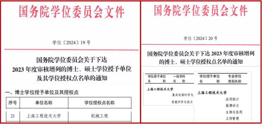 积极对接国家重大发展战略和上海产业发展布局,持续优化学位点布局,学校成功获批博士学位授予单位和机械工程一级学科博士点,实现了从0到1的历史性重大突破,也标志着我校办学迈上新台阶;新获批能源动力、生物与医药、工程管理和应用统计4个专硕点以及集成电路科学与工程、智能科学与技术2个学硕点,学校硕士学位点数量达27个,其中学硕15个、专硕12个,学位点布局与上海“2+(3+6)+(4+5)”现代产业体系更加匹配,为国家和上海经济社会高质量发展提供智力支持和人才保障奠定了基础。
