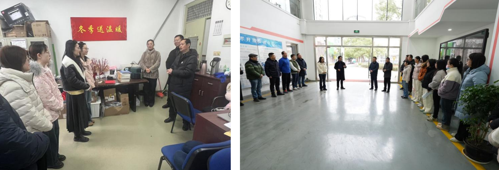 2月14日是虹口校区的首个工作日,虹口校区教职员工悉数到岗,紧锣密鼓地为新学期开学做准备,校园内外处处洋溢着喜庆与活力。上午9时,高职学院领导班子陆续走访了各个系部和职能科室、实训中心、后勤部门,向广大教职员工和所有工作人员送上新春祝福,勉励大家新的一年再接再厉、不断奋进,在学院校高质量发展建设过程中取得新的突破。