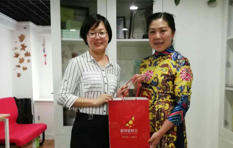 最后,姜为民校友非常感谢母校的栽培。对母校和在校学子写下祝福和寄语:改革开放四十年,母校走过光辉历程,感恩母校培育,祝愿母校再创辉煌,学弟学妹共同成长!谢志霞老师和沈智莉老师对姜为民校友真诚的祝福表示由衷的感谢,并邀请她常回母校看看。