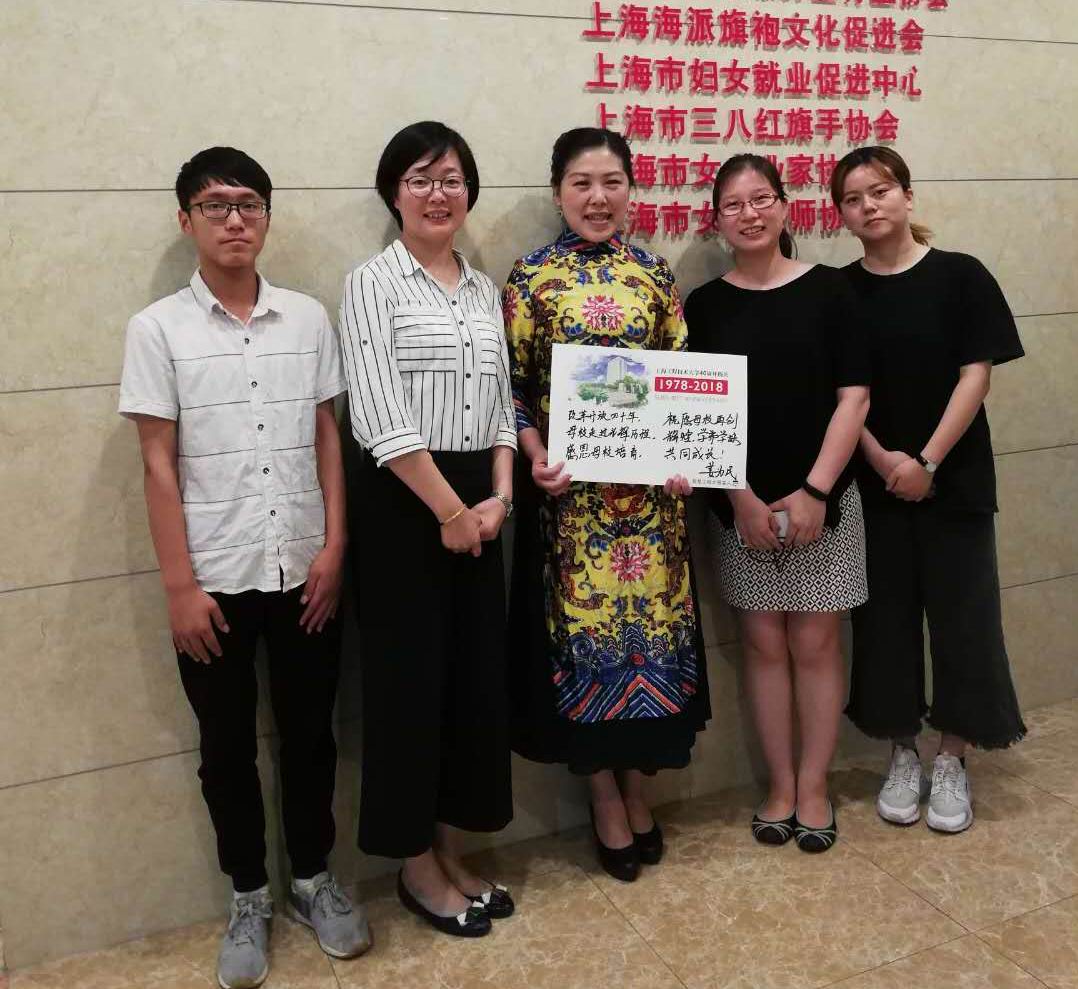 姜为民校友对学校一行的拜访表示热烈欢迎和感谢。她向我们介绍了她在学校毕业后的工作经历,在经过了不同行业的磨练后,最后选择了自己热爱、同时也与本科专业相关的海派旗袍文化领域,并在近几年的海派旗袍文化推广工作上取得了的良好的成果。姜为民校友还向我们介绍到,早在多年前,她利用自己有限的空余时间,势力将海派旗袍文化以及优秀传统文化发扬光大,并创办了儒雁飞艺术团。姜为民校友认为,在现今这个多元化的时代,由于快速的生活节奏,有的时候忘记了自己内心对于美的追求,而在海派旗袍文化中和艺术团中,我们可以通过在其中的学习,展现成为另一个全新的自己。近些年,海派旗袍文化促进会和儒雁飞艺术团在多次参加文化展示活动及大型赛事,例如米兰世博会、春节联欢晚会、上海旅游节等,并取得了优秀的成绩。
