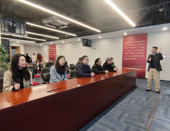 卢勇对电气学院一行表示热烈欢迎,并深情回顾了自己在学院求学的点点滴滴。他讲解了上海数据交易所如何构建数商生态系统、推动数据要素市场发展,赋能企业数字化转型,并且分享了相关典型案例,希望后续校企双方在人才培养、科技创新以及成果转化等方面开展深入合作。