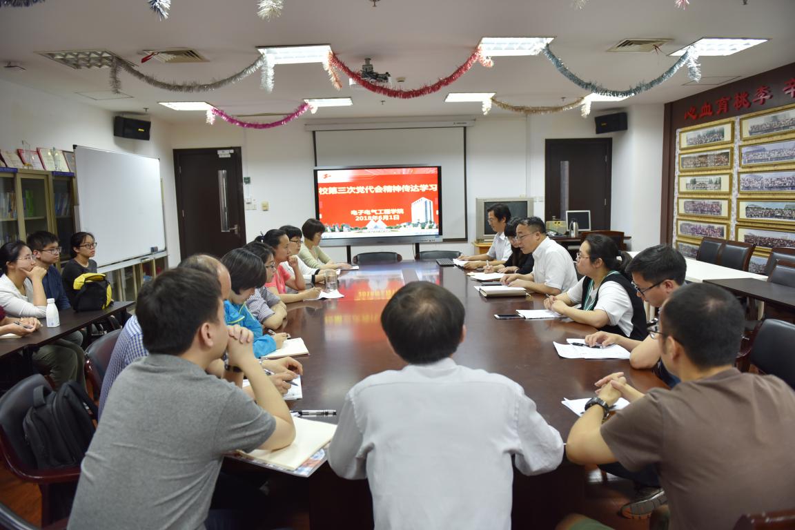 6月1日中午,电子电气工程学院党委副书记、院长方志军召开学院教师代表学习学校第三次党代会精神,学院党委委员,支部书记、系室主任、教授、新进教师和青年教师代表参加了会议。会上,院党委副书记、院长方志军向大家传达了学校第三次党代会精神,指出学校今后发展面临的新形势、目标定位、指导思想、“新三步走”奋斗目标,要求大家认真领会学院发展“三大战略”以及八项重点任务。方志军院长强调,各支部接下来要组织党员师生开展“学习宣传贯彻学校第三次党代会精神”系列主题党日和组织生活,进一步准确掌握党代会精神并落实到日常实际工作中。
