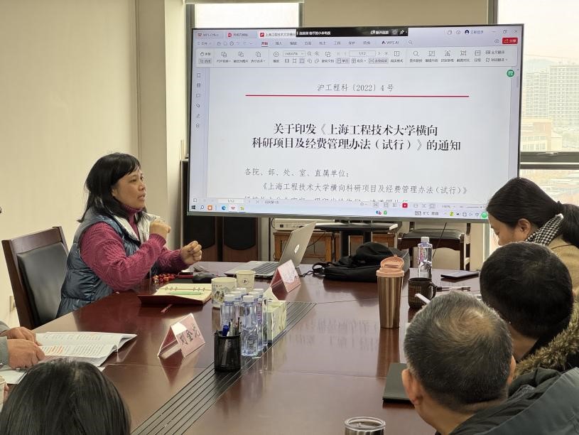 为提升教师科研能力和素养,2月21日下午,外国语学院邀请科研处郑凌莺、王嘉诚两位老师围绕《上海工程技术大学横向科研项目及经费管理办法(试行)》做政策解读与实务操作培训。培训会由外国语学院副院长刘金龙主持,各系(部)主任及骨干教师参会。