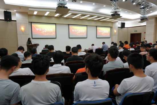 紧接着,考研优秀学生代表房郁同学分享了自己考研的经历和感悟,就复习经验、考研心态的调整、择校及复试需注意的问题出发,以真实的切身体会,给出了自己的意见和建议,并对鼓励学弟学妹们坚定考研信心,努力备考。