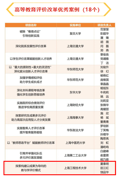 “2024年度上海市教育评价改革优秀案例”评审结果揭晓,我校申报的“探索构建以成果为导向的教与学评价模式”案例成功入选。