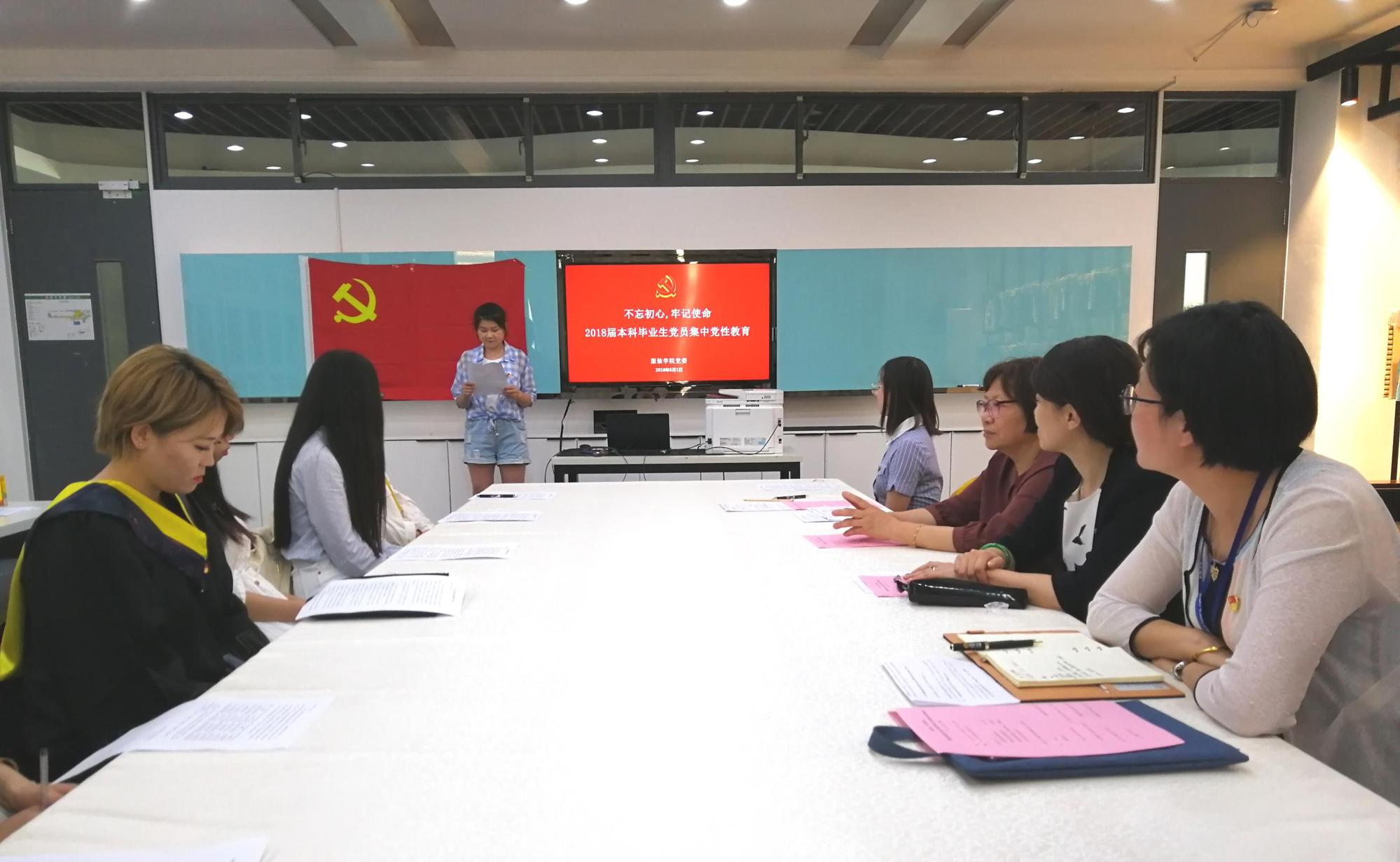 为加强毕业生党员的思想教育,服装学院党委于6月1日下午在艺术楼C210开展以“不忘初心、牢记使命”为主题的2018届毕业研究生党员集中党性教育。出席会议的有服装学院党委书记袁蓉、副书记谢志霞、组织员苌欣,全体毕业研究生党员,此外还特别邀请到了原服装学院党委书记、服装学院党委关工委老同志黄勤奋老师。会议由服装学院党委副书记谢志霞主持。