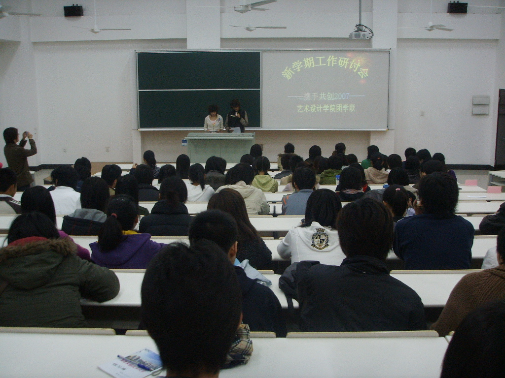 艺术设计学院团学联的10个部门派出了自己的代表,用PPT的形式展示了自己部门的风采。大会上大家聚集一堂,互相交流各自的工作经验和心得体会。多姿多彩的活动形式,详细的活动策划,精彩的活动过程,圆满的活动总结,让大家领略了我院学生丰富的业余学习生活。 最后,学院分团委书记康慧老师总结了大家一年的工作情况,对团学联干部、干事的工作表示了肯定,并对所有在场的同学在工作、学习提出了更高的要求,在保持现有的成绩的同时鼓励大家将我院的团学联工作再上升一个高度。 | |