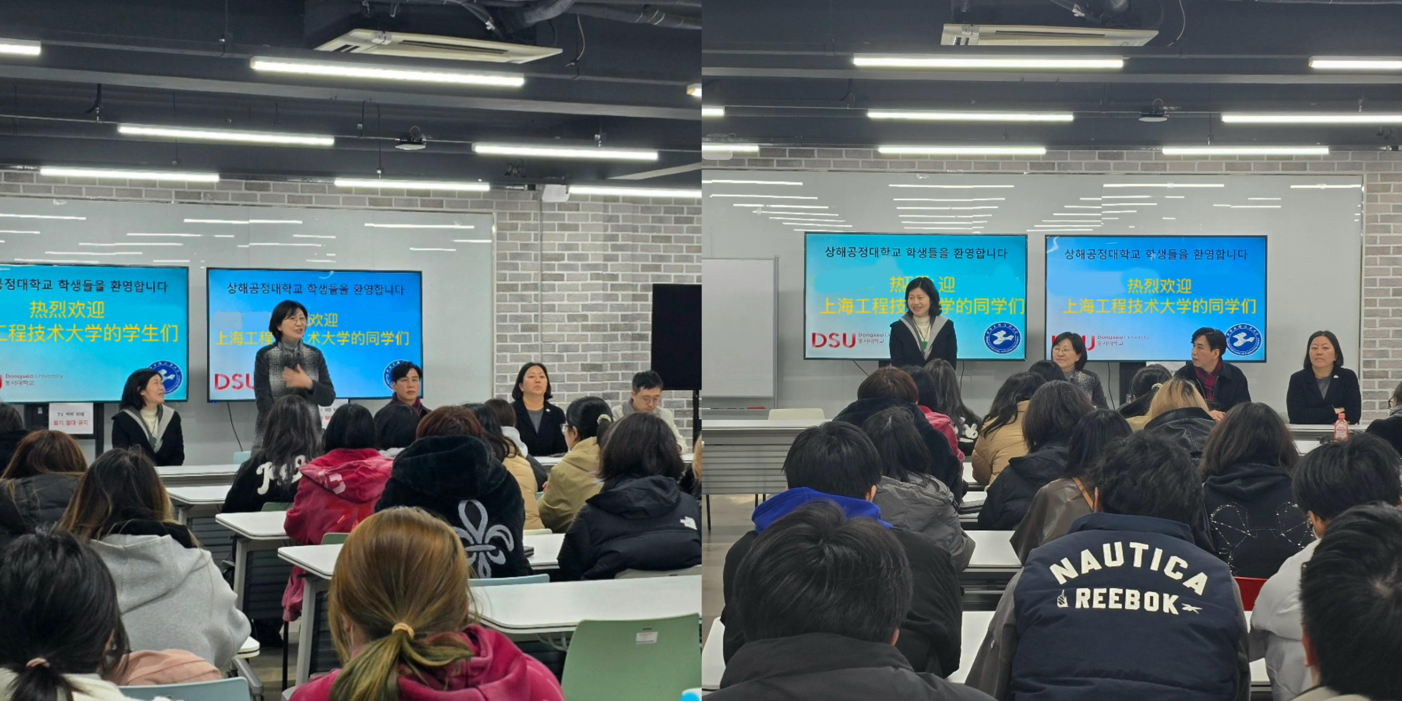 韩国东西大学特别为国际创意设计学院的师生举办了一场温馨而热烈的欢迎仪式,让远道而来的师生感受到浓厚的友好氛围。欢迎仪式上,韩国东西大学设计大学院长장주영(Jang Juyoung),教学部长서한석(Seo Hanseok),专业教授김동현(Kim Donghyun)、김지혜(Kim Jihye)等共同出席,与学生们进行了面对面的深入交流。他们详细介绍了未来一年的课程安排、学术发展方向以及学习生活的相关事项,并鼓励学生们充分利用这一国际化平台,积极探索专业领域的前沿动态。