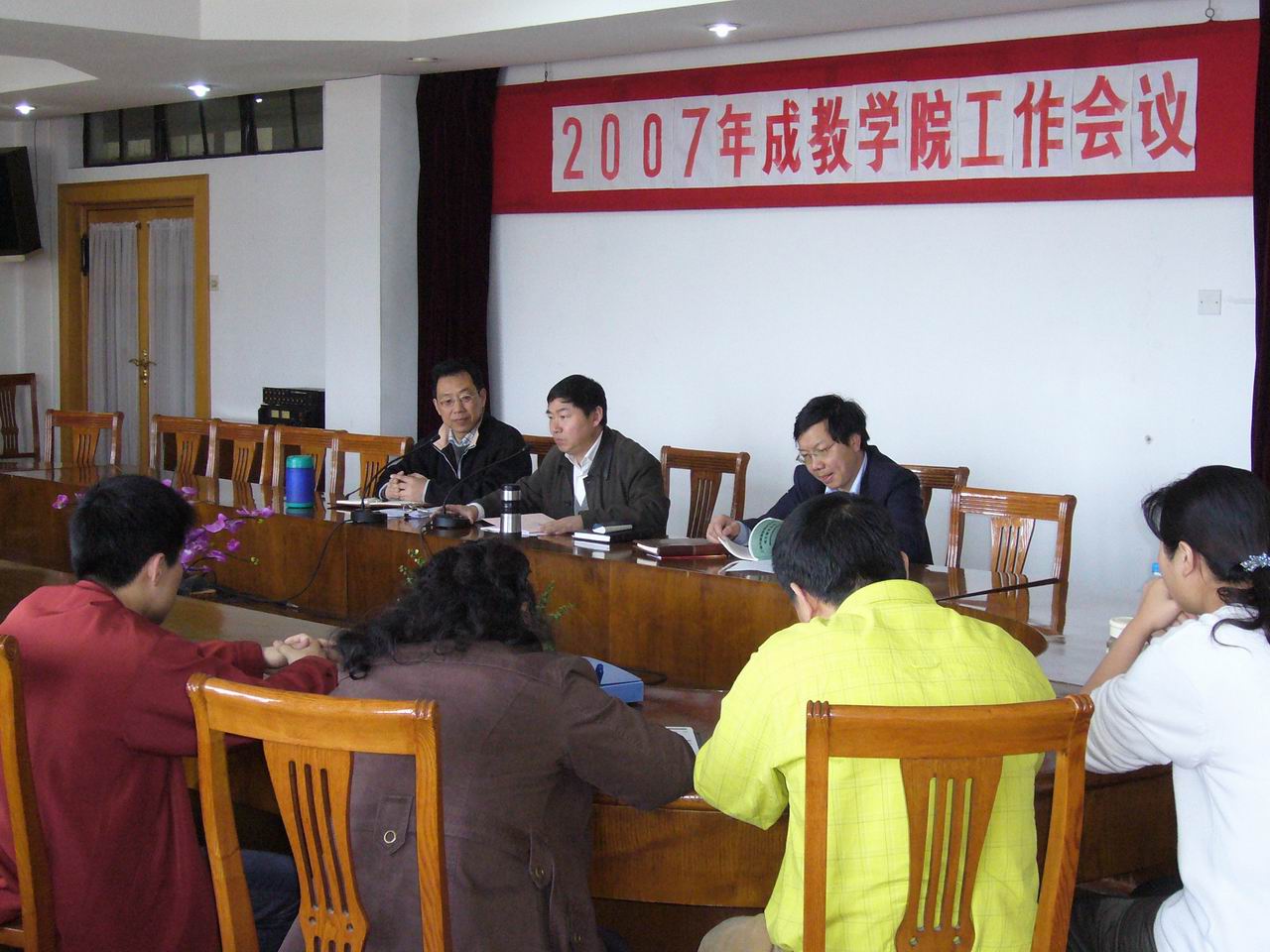 4月12日,成人教育学院召开了全院教职工大会,马力中院长传达了校“三届七次教代会” 学校工作报告的主要内容和重要精神,姚黎明副院长代表学院行政就学院2007年的工作做了部署和安排。