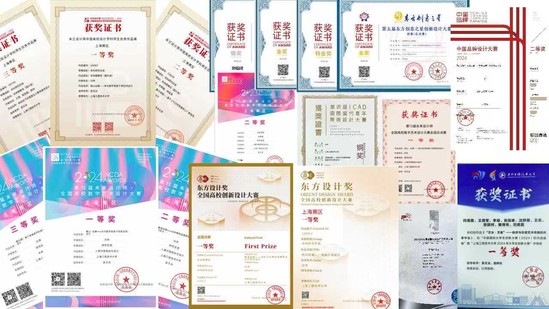 积极组织学生参与国内外各类设计竞赛,并屡获佳绩。近三年来,斩获6项“上海设计100+”、2项“设享奖EDW”、“正泰杯”全国机械工业设计创新大赛金奖以及“中国国家红星奖”“全国大学生工业设计大赛”上海市一等奖、“东方创意之星设计大赛”全国三等奖、“米兰设计周—中国高校设计学科师生优秀作品展”全国二等奖、“未来设计师·全国高校数字艺术设计大赛”全国一等奖等数十项奖项。这些成果不仅展示了团队在设计与实践中的卓越能力,也为学生提供了展示才华的广阔舞台。