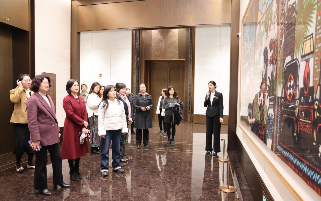 与会人员参观了世界会客厅的展览区域,领略了这里的独特魅力和丰富内涵。世界会客厅不仅是一个展示上海形象的窗口,更是一个促进文化交流与合作的重要平台。民革市委的女干部代表和学校女教授分别就服务地区经济发展,主动对接“3+6”现代产业进行交流沟通,双方积极发挥智库功能和党派团体功能,为上海市建言献策,集聚女性力量。