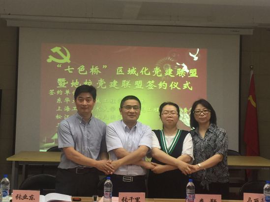 松江区广富林街道“七色桥”地校党建联盟于去年4月份在我校启动,雪院党委积极贯彻落实全国和上海市城市基层党建工作会议精神,结合《松江区关于深化区域化党建工作的实施意见》(松委办【2015】32号),以党建工作为引领,全面推行区域内党组织之间的“联动、共建、共享”机制,积极联合共建单位整合区域内各种党建资源和社会资源,充分发挥基层党组织战斗堡垒租用和各类党员先锋作用,组织全体党员共同参与到区域化党建工作中。