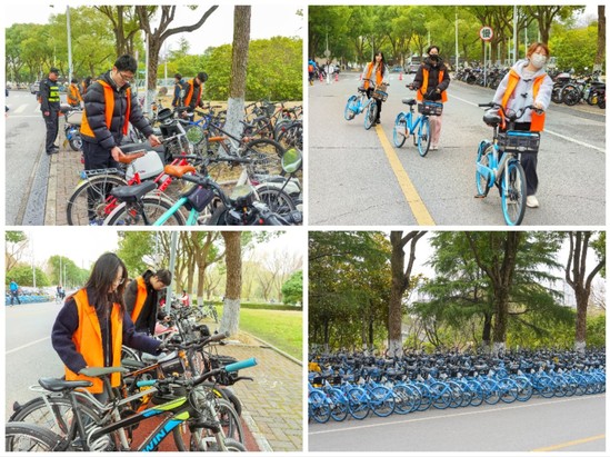 志愿者们身穿红马甲,每两个党支部和一名保安师傅分成一组,迅速投入到单车最为集中的教学楼片区开展志愿整理活动中。志愿者同学们发扬“不怕苦、不怕累”的服务精神,将随地乱停乱放的自行车一辆一辆地搬运到集中位置停放,将未规范停放的自行车有序停放。志愿者们不仅将车辆摆放得井井有条,还对车主进行了友好地劝导。志愿者们忙碌的身影在校园中形成了一道亮丽的风景线,展现了我院青年学子良好的精神风貌。