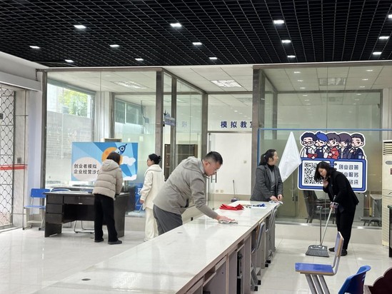 义务劳动打扫勤,校园风貌焕然新。在学院党委副书记杨洋的带领下,管理系党支部全体党员自备劳动工具,仔细打扫教室和实验室;工会主席桂佳带领政工党支部清扫职教大厅的地面和桌椅;其他党支部也纷纷在校园开展义务劳动,全力建设温馨美丽校园,打造优质育人环境。