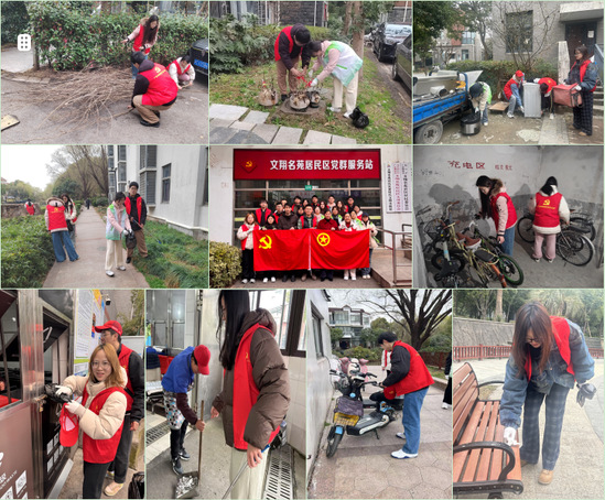 研究生及本科生党员在社区安排下,分组参加了垃圾分类整理指导、绿化带垃圾扫除、楼道自行车有序排放、公共区域小广告清理、公共区域无主物品搬运转移等活动。学生党员们热情高涨,用自己的实际行动践行了雷锋精神、服务了社区居民。文翔名苑居委会党支部顾文娟表示,高校与社区资源共享开展党建联建,不仅能够帮助社区解决实际问题,赋能基层治理,也能为青年学生提供社会实践平台,促进其成长成才。
