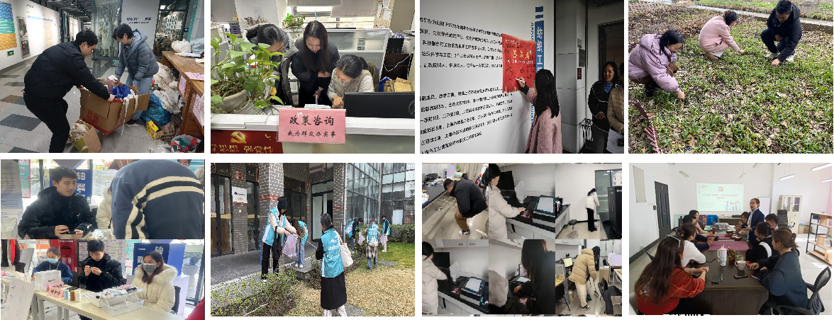 志愿服务,诠释志愿精神。各党支部志愿活动丰富多样,其中党政管理党支部为师生提供政策咨询;纺工教工党支部和研四党支部主动清扫实验室和维护设备;服工教工党支部参与校园菜园春耕劳动;通识教育中心党支部为教师开展心灵疗愈;学生第一、第二党支部深入社区,提供Q版人像绘制、缝扣子等便民服务并参与卫生清理,师生党员们以点滴行动诠释志愿精神。