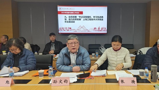 孙文钧动员部署了“牢记深情嘱托、学习先进典型、助力改革发展”上海工程技术大学离退休主题活动。希望广大离退休教职工要继续关心和支持学校的发展,积极学习老同志的正能量事迹,充分发挥自己的优势和特长,为学校的发展建言献策,贡献力量。