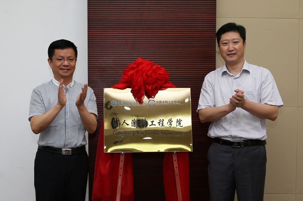 双方签订了产学研战略合作框架协议,吉伟董事长和李江书记共同为吉人涂料工程学院揭牌。