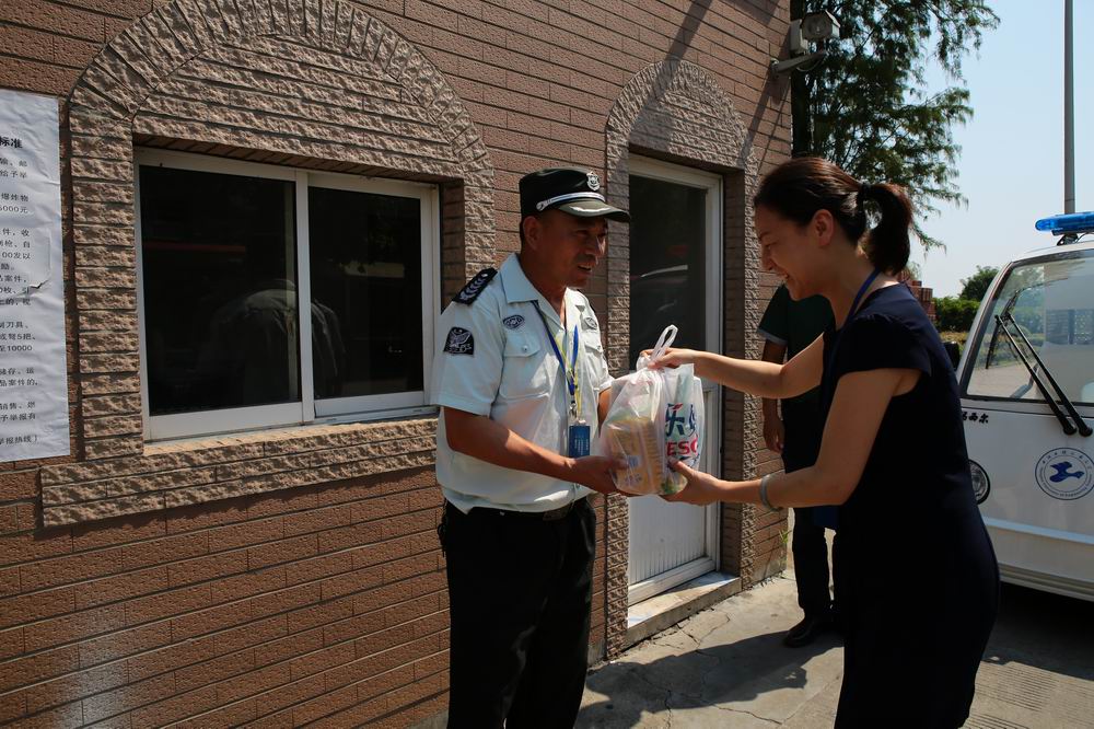 冒着高温酷暑仍坚持工作的精神表示衷心的感谢和崇高的敬意,并致以亲切的问候。在保卫处各个值班岗亭,校领导与值班人员进行了交谈,希望大家注意防暑,认真作好消防安全保卫工作;在航飞大楼,校领导了解了学院暑期工作安排以及搬迁工作的进展,并表示学校一定会协助学院解决困难和问题;在教学楼,校领导嘱咐基意公司和科瑞公司的工作人员要注意休息,防暑降温;在学生公寓,校领导对2015级迎新准备工作进行了检查,看望了顶岗工作的学生和工作人员并了解了空调安装以后学生们的生活情况;在师生活动中心餐厅,校领导询问了工作人员的暑期工作情况,要求食堂在保证食品供应的同时要重点落实食品的安全卫生,嘱咐工作人员劳逸结合,保重身体。校领导一行的亲切慰问,使坚守在工作岗位的一线员工深受感动,激发了大家克难坚守的热情和工作的积极性。大家纷纷表示,要以师生为本,保质保量完成暑期各项工作任务,确保学校各项工作安全、有序开展,为广大师生提供更好的学习与生活的环境。