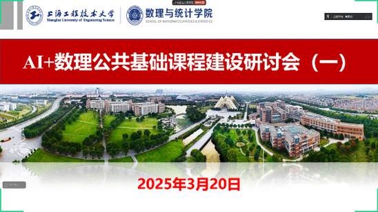 为贯彻落实国家教育数字化战略,推动AI+数理公共基础课程建设,全方位提升教师数智素养,3月20日晚,数理与统计学院线上举办人工智能赋能(AI+)课程建设交流会,邀请上海交通大学网络信息中心数据业务部主任章思宇和苏小明博士做指导交流,学院院长王国强、副院长郑中团,各系部中心主任、副主任和部分教师参加会议,王国强主持会议。
