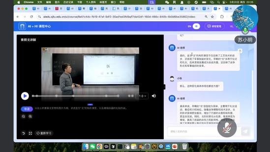 苏小明重点分享了交大AI应用平台承载的AI+数理课程建设的应用探索,展示了AI技术如何助力课程建设、提升教学效率,并辅以实际操作展现AI赋能下的个性化教学模式。