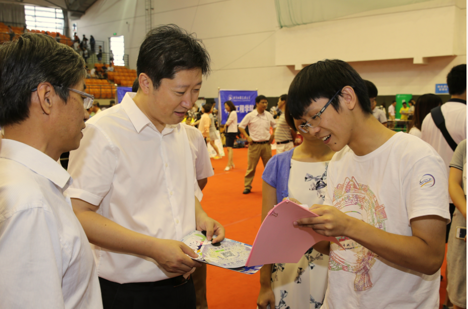 在体育馆迎新现场,校领导深入每个学院的迎新接待点,听取各学院迎新工作的具体安排,仔细询问报到进展情况和新生报到手续办理的情况,并向辛勤工作在迎新一线的辅导员、后勤人员和学生志愿者表示亲切慰问。他们每到一处,都与各部门迎新人员亲切交谈,询问新生报到情况、接站情况、绿色通道的办理、住宿情况等,希望各单位把迎新工作做得更细致周到,用热情的服务展示工程大的品质,用细致的关怀体现工程大的真诚,同时要求各单位认真总结经验、克服不足、善于创新、勇于开拓,为明年的迎新工作积累更多有益经验。