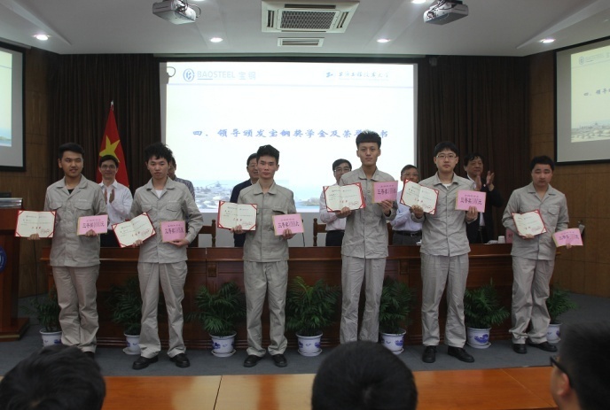 据悉,宝山钢铁股份有限公司与上海工程技术大学自2014年1月签署企校联合办学协议,联合培养“宝钢机电一体化”专业人才,一年多来已经开设“冠名班”2个,学生总数达72人。为了鼓励“宝钢班”学生勤学苦练,公司拿出专项资金,作为奖学金,奖励品学兼优、技能精湛的学生,本次共评出2013、2014年度共30名获奖学生。