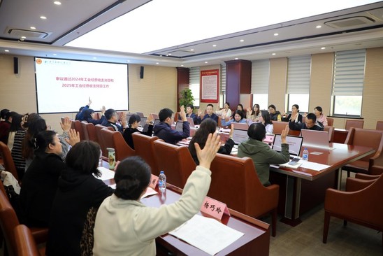 李霞汇报了2025年工会(妇工委)工作要点,汇报了2024年工会经费收支决算和2025年工会经费收支预算工作情况,全体委员审议一致通过。校工会副主席张鹏汇报了工会制度制订计划,并就《上海工程技术大学工会固定资产管理办法》进行了意见征求。
