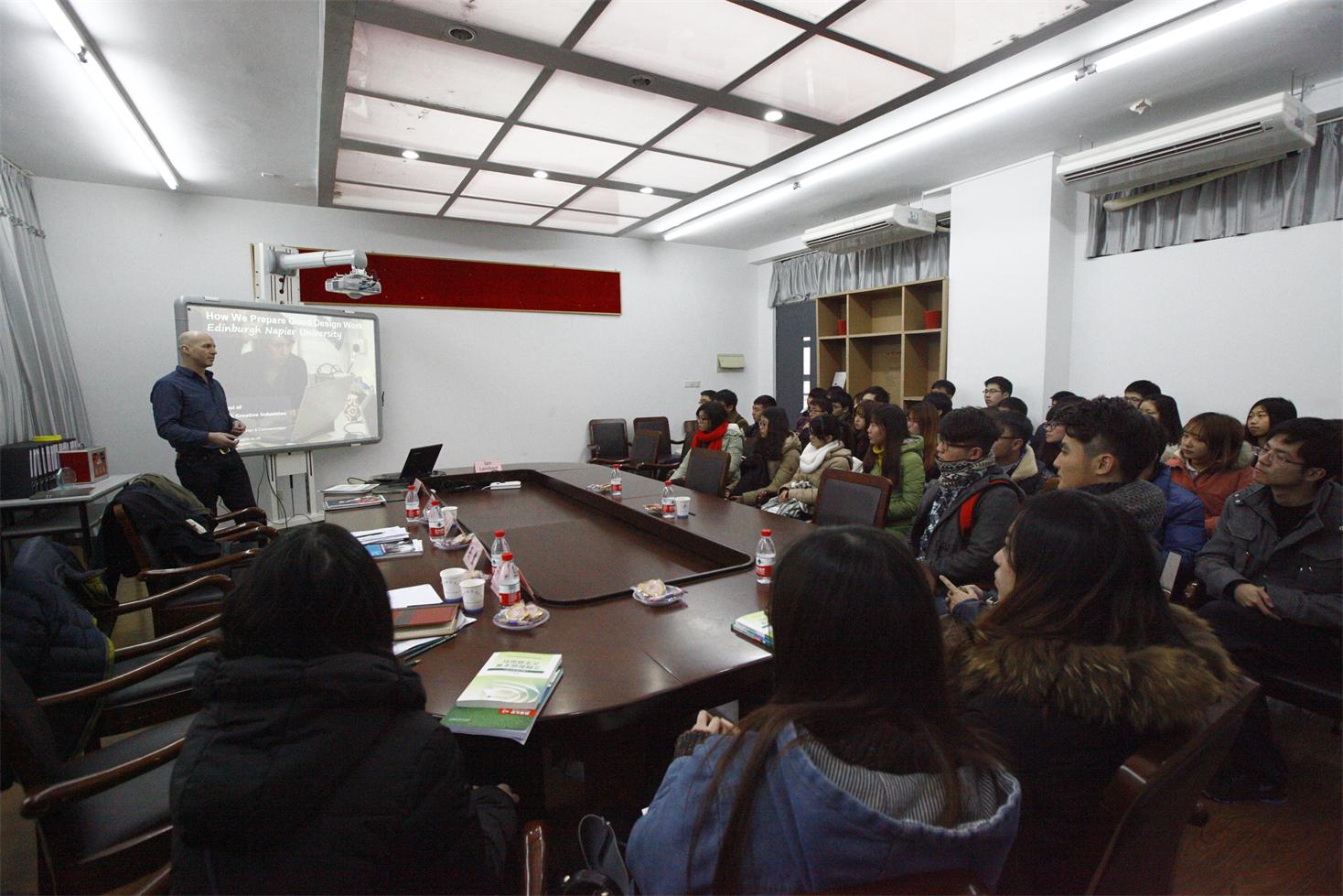 最后,IAN Lambert教授一行参观了学院的实验室和成列在展示区域内的学生作品。IAN Lambert教授还为艺术设计学院的60余位学生作了题为“如何准备做好的设计”的专题讲座。