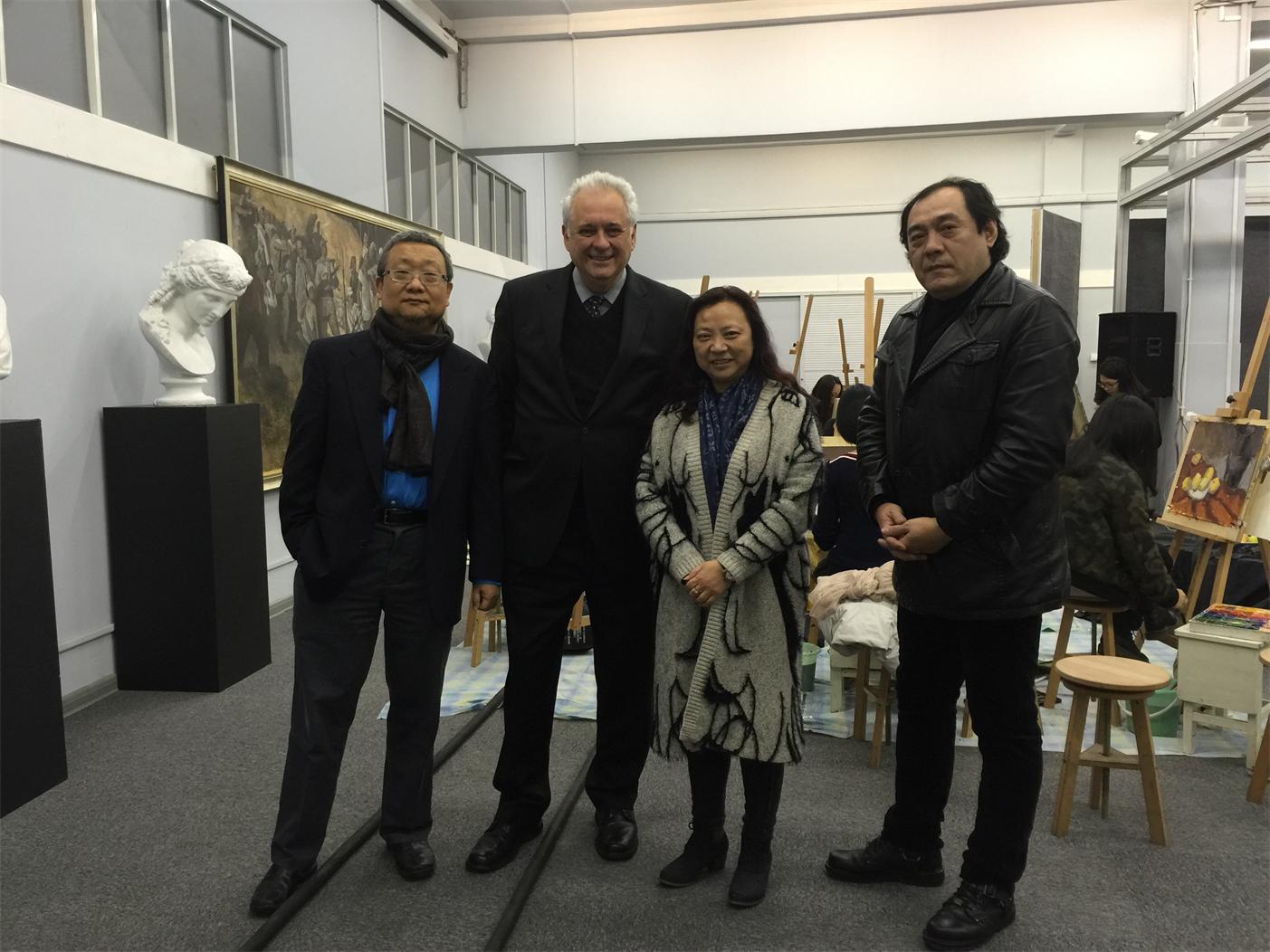 周晓鸣院长就两院自2009年开始的一年一度的“城市”主题综合设计项目进行了回顾,感谢Glen院长这6年来对两院间国际交流活动的大力支持,并就学院专业设置和教学特色及近年来国际化办学的发展战略和成果进行了一个简短的介绍。而美国劳伦斯理工大学建筑与设计学院院长Glen S. LeRoy教授则针对劳伦斯理工大学的教学及国际交流情况进行了介绍。双方就如何进一步拓展两校间的国际交流合作展开了探讨,内容涉及互授课程、国际会议及展览、学分认证、教学方式等。经过富有成效的讨论,双方院长就联合建立“中美参数化视觉艺术设计实验室”达成了高度的共识,并初步签署了“中美参数化视觉艺术设计实验室”合作协议书。