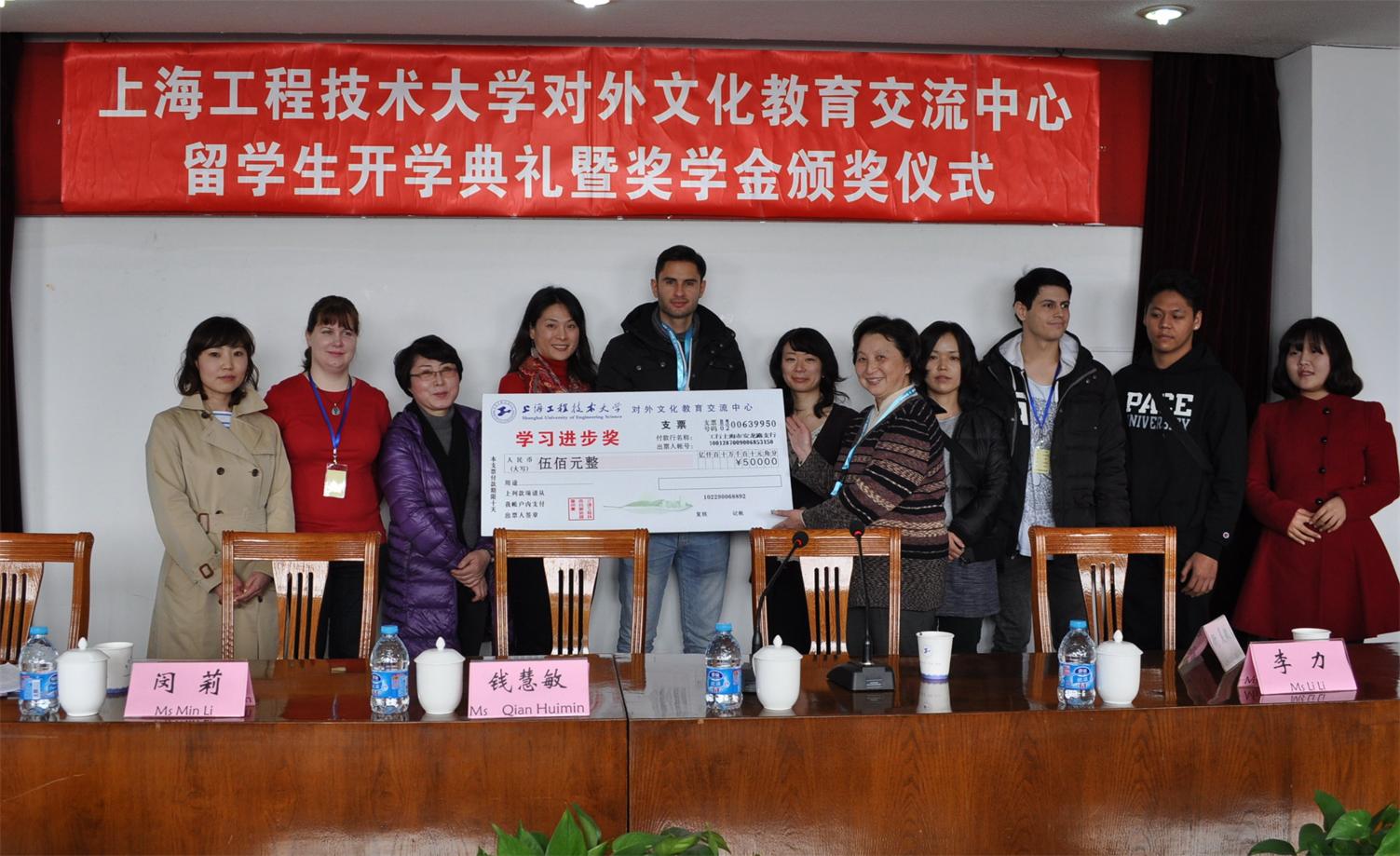 上海工程技术大学2014-2015学年秋季学期留学生校级奖学金颁奖仪式在典礼上举行,此次共有12名留学生获此殊荣。