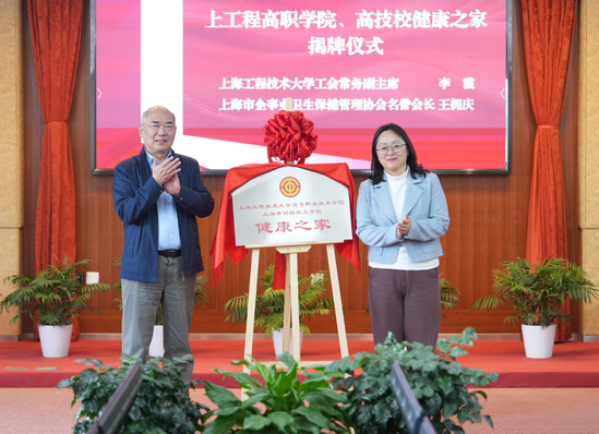 会上,李霞与上海市企事业卫生保健管理协会名誉会长王拥庆为“上工程高职学院、高技校健康之家”揭牌。