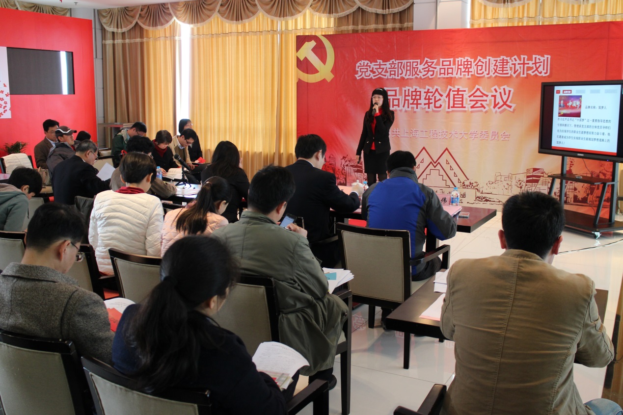 上海工程技术大学党委高度重视教工党支部建设,通过实施“支部服务品牌创建计划”,引导教工党支部在服务项目培育过程中,将党内生活的政治属性与服务功能有机结合,不断深化支部建设,强化服务内涵,发挥教工党员模范带头作用。近日,“支部服务品牌创建计划”获立项的教工党支部以轮值会议的形式进行了培育成果的展示汇报,逐渐形成了支部的服务品牌。