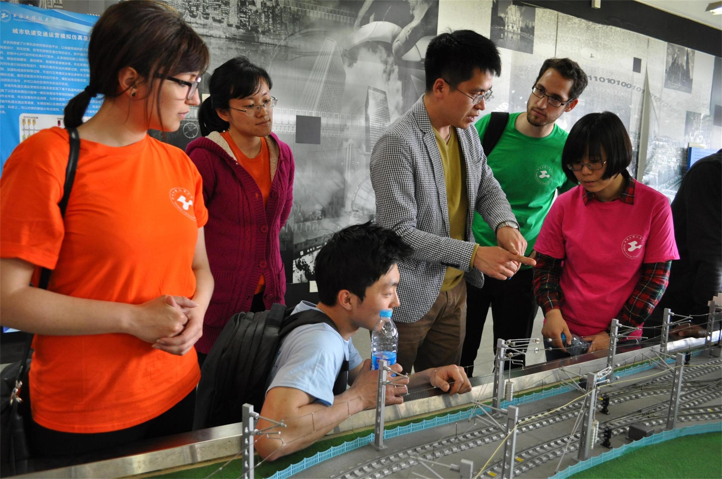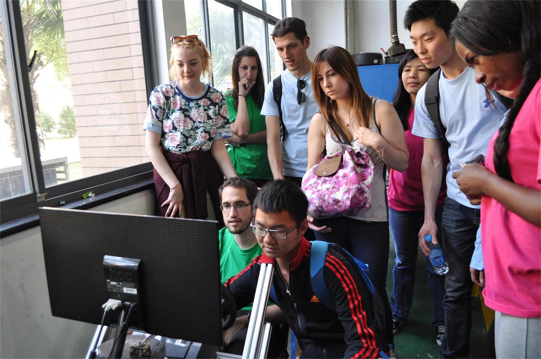 在汽车学院的大学生创新创业基地实验室,留学生们与正在备战今年十月的大学生F1方程式赛车的学生们进行了深入的交流。留学生们对大学生的设计与动手能力大为惊叹。利用这个宝贵的机会,留学生们试驾了同学们新设计的赛车。在轨道交通学院,留学生们饶有兴致地在巨幅上海地铁线路图上寻找自己熟悉的地铁站,体验了模拟驾驶。来自法国的DOUGERE ADELINE同学曾就职于法国Alston公司,听说上海地铁三号线采用的是Alston的列车,感到格外亲切。在航空学院,同学们看到飞行技术专业一年级的学生在老师的指导下进行飞行模拟训练,小班化的教学让同学们印象深刻,只有经过这样精心培养下的未来飞行员才有过硬的技术,恰似中心的汉语小班化教学,能让留学生们获得老师的充分关注,拥有足够的练习机会。在服装学院展厅,留学生们观看了学生的毕业作品展,非常喜爱这些构思新颖、时尚前卫的作品;而在服装营销电子商务实验室的“魔镜”-智能试衣系统前,爱美的女生纷纷驻足,感叹高科技带来的便利生活。值得一提的是,参与此次参观活动的留学生中,有3名语言生已决定报考我校学历生课程,参观结束后,他们更加坚定了来我校继续深造攻读学历课程的决心。