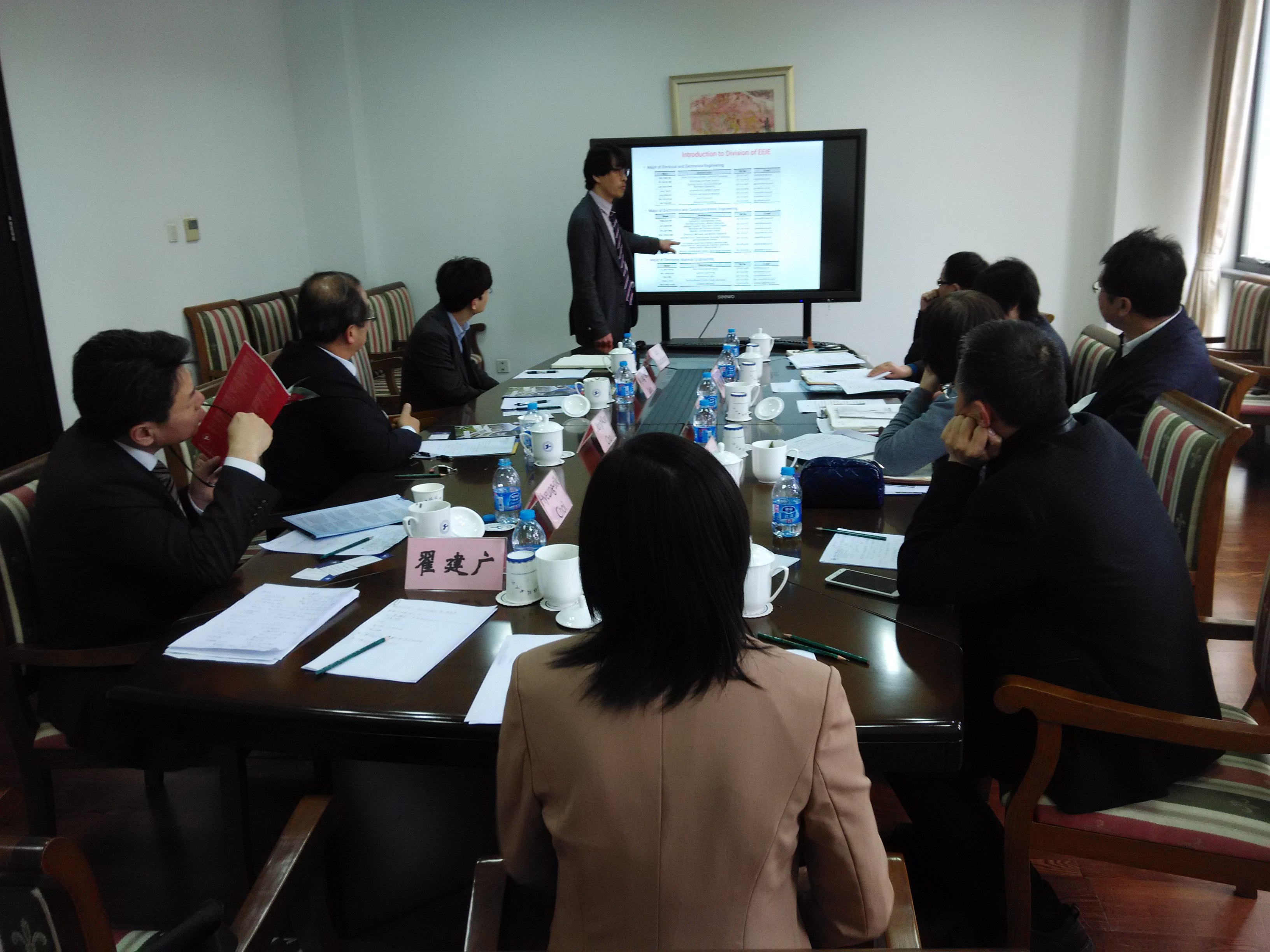 参观结束以后,在行政楼B204进行了会谈,国际交流处钱慧敏处长主持了会议,双方讨论了关于两校联合培