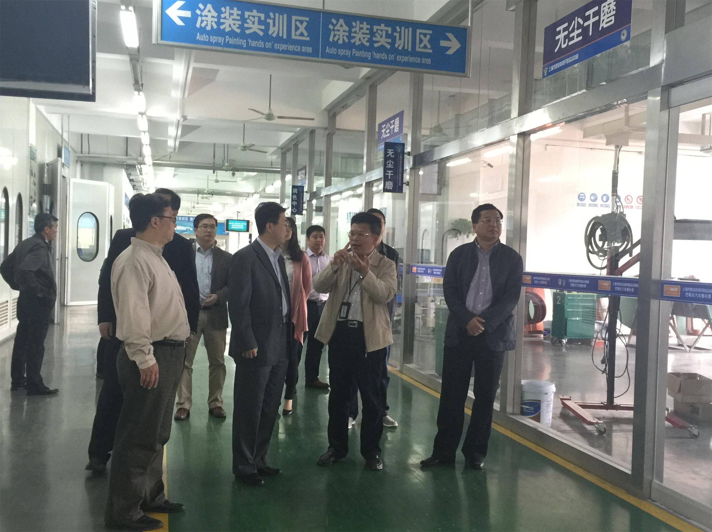 在上海市松江区教育局党委书记徐届生、上海市城市科技学校校长张巨浪等的陪同下,参观了汽修开放实训中心,张校长带领王岩松院长一行先后参观了整车实训区、钣金实训区、涂装实训区等六大实训区,详细介绍了学校开展校企深度合作的实践与探索。
