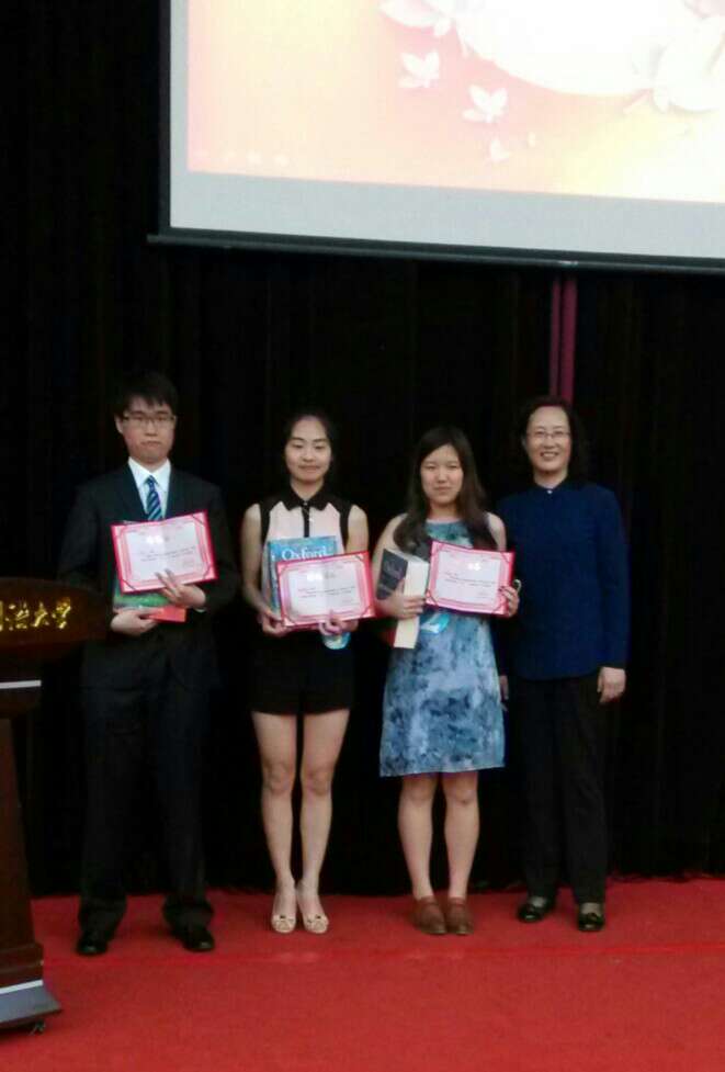 朱文琪和吴玉洁两名同学均两次参加我校每年10月份举办的校内英语演讲比赛,表现非常出色。本次由她们代表我校出战“外教社杯”比赛。两位参赛选手英语发音标准,表达能力出色,心理素质过硬,台风稳健,在经过了定题演讲、即兴演讲和自由问答三个环节的激烈比拼之后,朱文琪获得本次比赛的三等奖,吴玉洁获得鼓励奖。朱文琪同学还在比赛过程中进行了脱口秀的才艺表演,她流利的英语表达、幽默的选题以及自信从容的台风为在场的所有评委及观众留下了非常深刻的印象。