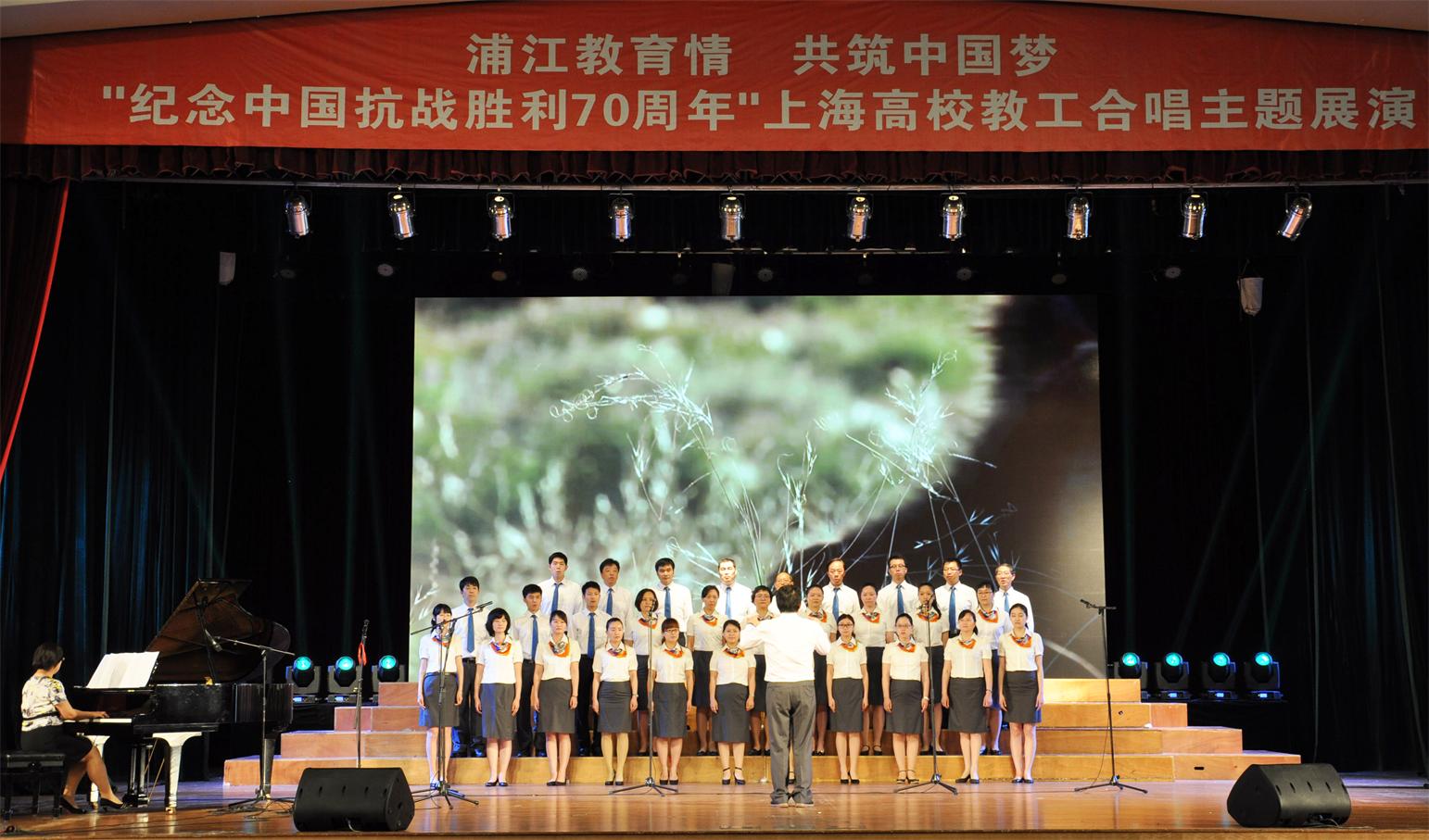 为了纪念世界反法西斯战争胜利70周年暨中国人民抗日战争胜利70周年,继承和弘扬革命精神,由上海市教育工会与同济大学联合主办,上海市教工合唱协会、同济大学党委宣传部和同济大学工会承办的“纪念中国抗战胜利70周年”上海高校教工合唱主题展演活动于近日在同济大学四平路校区隆重上演。上海市教育工会副主席吉启华,校工会常务副主席沈海庆,高等职业技术学院党委书记柳如荣,党委副书记、工会主席田盈耕及各参展学校领导等出席了本次展演活动。