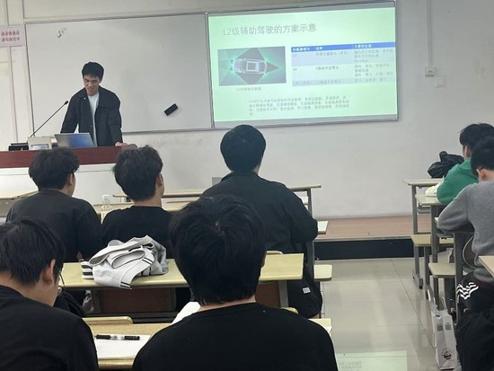 课堂上,胡胜利凭借在辅助驾驶领域丰富的实战经验,详细阐述了辅助驾驶系统从最初的概念构思,到实际落地应用过程中所历经的重重挑战。通过展示实际项目案例,生动地讲解了常见辅助驾驶功能的技术原理,这一过程让同学们对“汽车理论”中关于车辆动力学、运动学以及控制系统等相关知识在实际场景中的运用有了更为直观的理解。同时,他还分享了项目开发过程中的团队协作模式,强调了不同专业背景人员紧密配合的重要性,让同学们意识到在复杂的汽车工程领域,良好的团队沟通与协作能力非常重要。