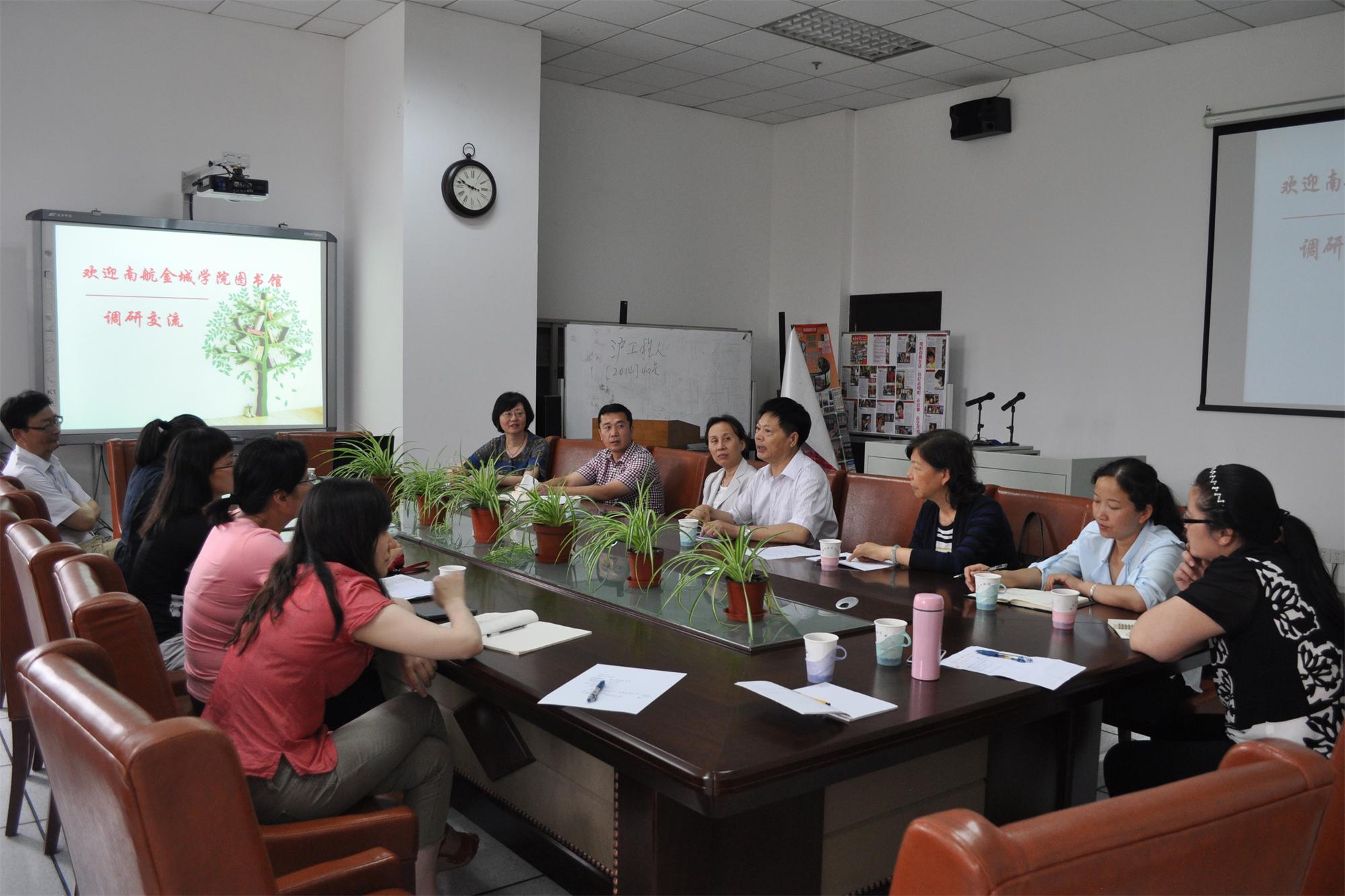 会上,副馆长张欣介绍了我校图书馆的基本情况,以及在移动图书馆、阅读推广、图书馆精细化管理等方面所做的工作;南京航空航天大学金城学院图书馆陈万寅馆长介绍了金城学院图书馆的基本情况;两馆同仁交流了图书馆如何针对所读者的需求变化调整图书馆的服务方式,如何主动深入院系做好学科服务工作,如何进行服务创新和宣传推广等;最后,南航同仁参观了图书馆大厅和第二阅览室,就馆舍空间布局、慕课推荐等方面进行了讨论。